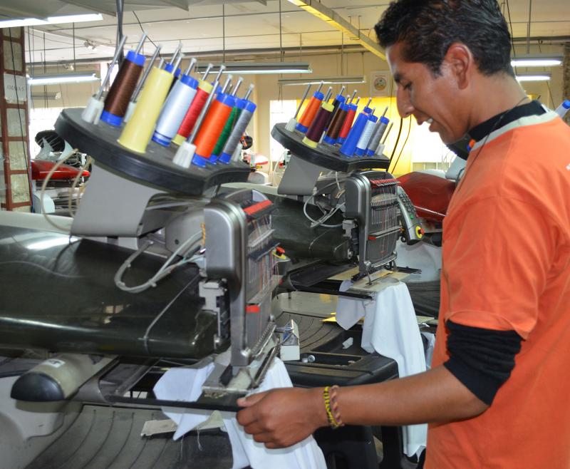 Rody Antonio Colque recibió su certificado de confeccionista de prendas de vestir, luego de haber trabajado en esta fábrica y en otras alrededor de diez años. Antonio cuenta que empezó seleccionando hilos y luego aprendió a manejar las máquinas que le permitieron lograr nuevos espacios de trabajo y experiencia.