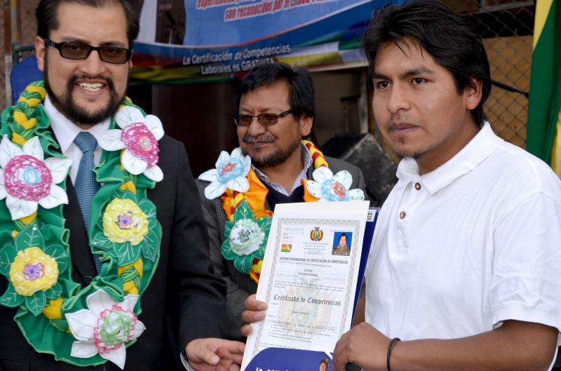 El viceministro de Educación Alternativa y Especial, Noel Aguirre, expresó que este es un acto donde el Sistema Plurinacional de Certificación de Competencias reconoce formalmente y con la documentación respectiva a los trabajadores de ENATEX que tienen entre cinco a 25 años de experiencia laboral y que son expertos en el área que señala el certificado.