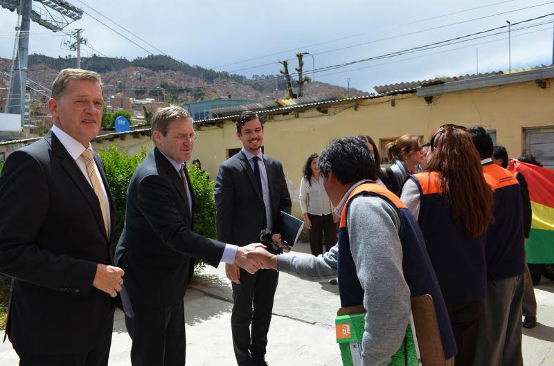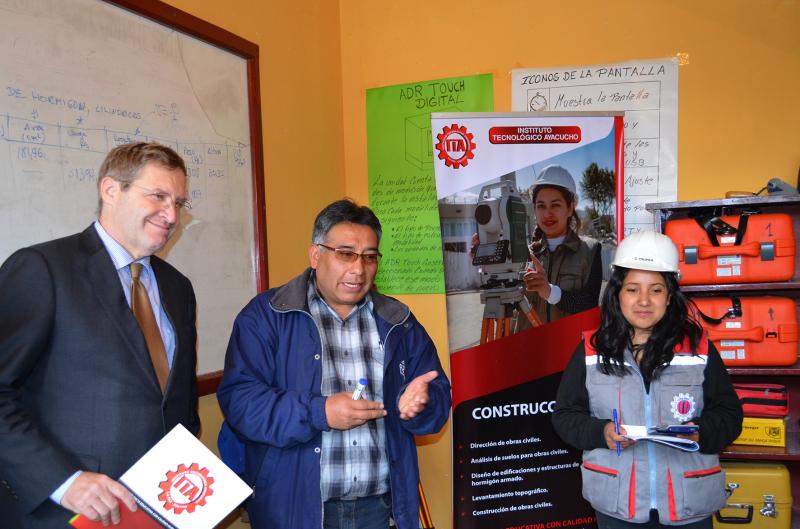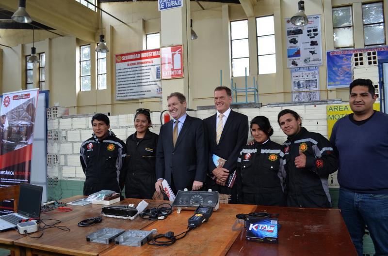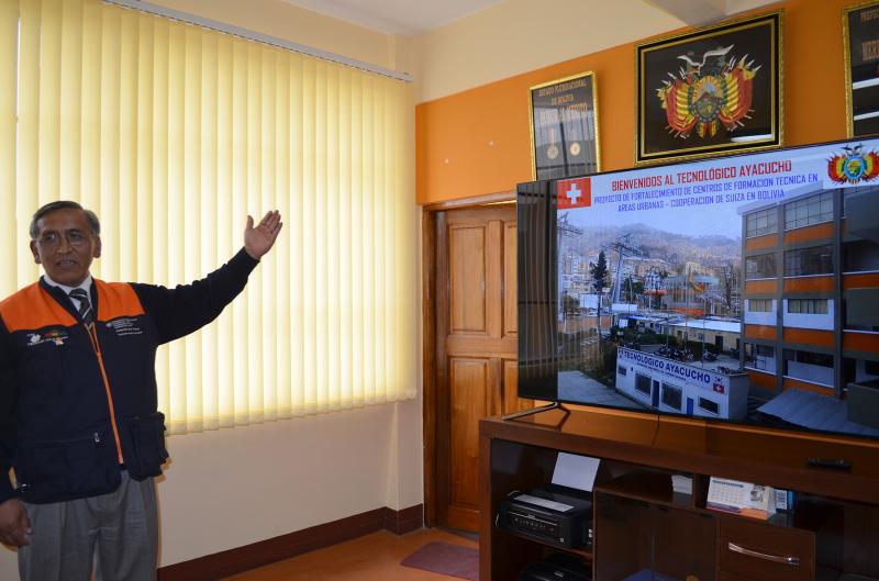 El pasado 10 de octubre estuvo en Bolivia una comitiva diplomática suiza que visitó el Instituto Técnico Tecnológico Ayacucho en la ciudad de La Paz. “Han escogido bien el nombre del Instituto Ayacucho, porque la educación técnica para los jóvenes es una buena batalla y que bien sabemos, también en Suiza, que todo debe empezar con la educación”, expresó  el Secretario de Estado Adjunto para las Américas del Departamento Federal de Asuntos Exteriores de Suiza, Embajador Bénédict de Cerjat.