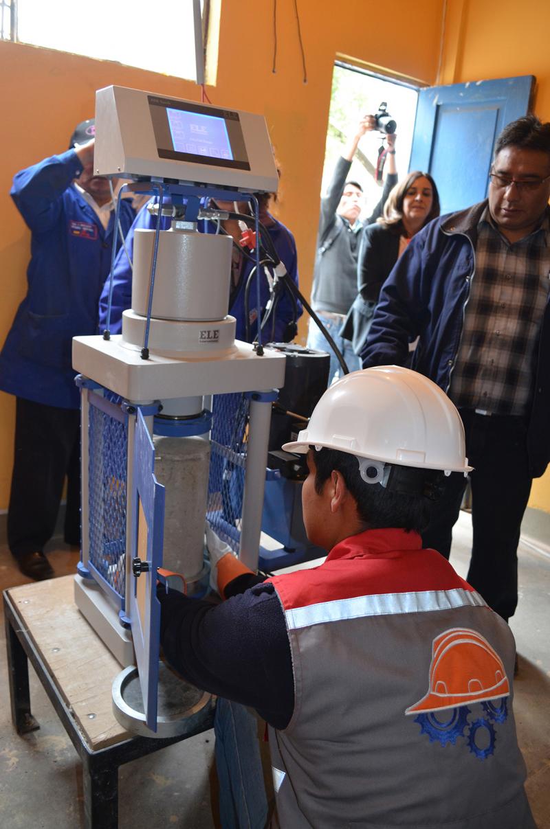 El área de construcción civil se compró equipamiento técnico que permite analizar las mezclas que se usan en lozas y vigas, a la par de verificar su grado de consistencia y eficiencia de acuerdo al contexto en el que se usan estos materiales.  Este equipamiento fue probado ante los visitantes.