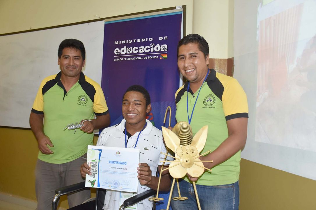 Cristian, un joven afroboliviano del Departamento de Pando y estudiante del Centro de Educación Especial (CEE) Cobija B, cuenta que desde que nació no tenía las piernas y que siempre utilizó silla de ruedas. Explica que también fue a otros centros educativos donde no se sintió a gusto pero que, al entrar en el CEE Cobija B, descubrió que sus inquietudes se hacían realidad a través de su formación en metalmecánica y la producción de piezas tanto utilitarias como artísticas.