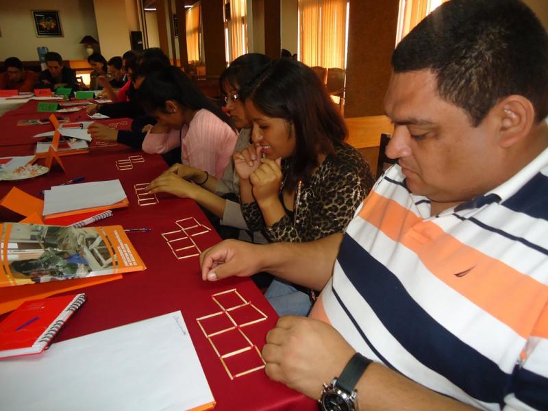 Docentes realizan ejercicio práctico mental en tema de emprendimiento.