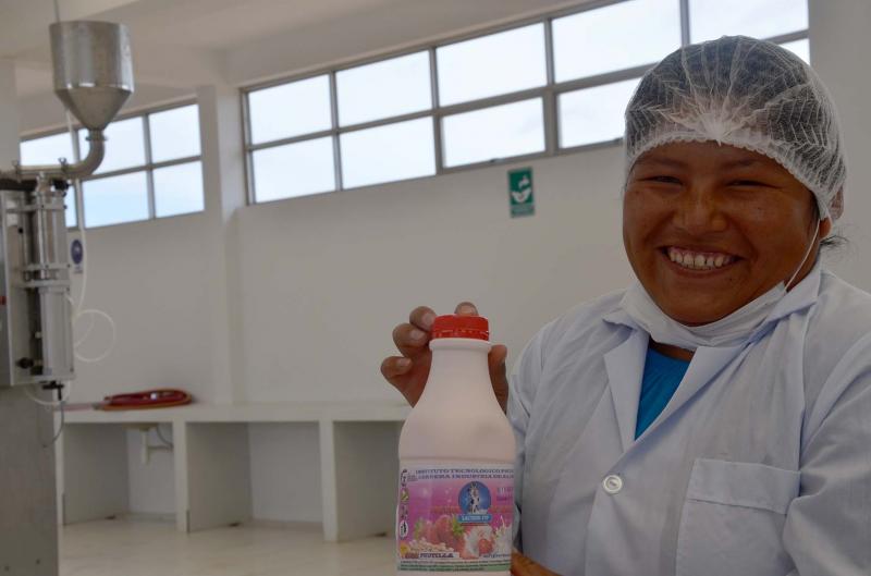 Rosmery Lima Condori nos dijo que lo que más le gusta de esta carrera es precisamente el área de lácteos y que, cuando salga del Instituto, está en sus planes seguir perfeccionando sus estudios  y contar con un emprendimiento que le permita tener su propia planta de lácteos.