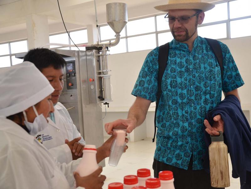 A propósito de la visita de Benjamin Lang, director regional de América Latina de Swisscontact, se tuvo la oportunidad de visitar el Instituto Tecnológico Industrial Patacamaya, ubicado en el altiplano paceño, donde se imparte formación profesional en las carreras de industria textil, electricidad industrial e industria de alimentos, áreas que albergan a 280 estudiantes provenientes de este municipio y de otros aledaños como K’onani, Huachacha y Viscachani.