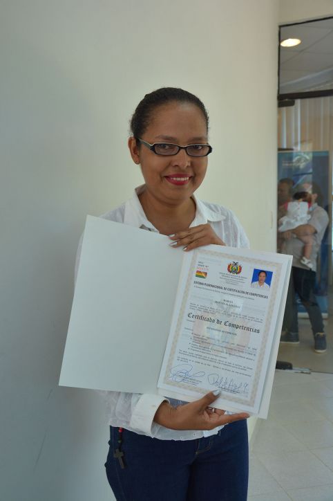 Maritza fue la única mujer entre 61 reparadores automotrices que recibieron el certificado oficial extendido por el Ministerio de Educación, a través del Sistema Plurinacional de Certificación de Competencias (SPCC), que reconoce los saberes, conocimientos y experiencias aprendidas a lo largo de la vida a nivel de “experta”.