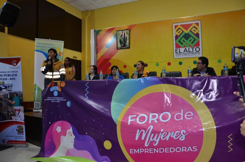 Emprendedoras de El Alto se reunieron para intercambiar sobre temas como: trabajo digno, políticas públicas, independencia económica y emprendimiento.  El evento contó con la participación de alrededor de 400 mujeres de esta ciudad que representan a centros de formación técnica, mujeres privadas de libertad, mujeres LGBT y mujeres con capacidades diferentes.