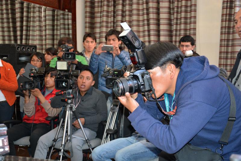 Por su parte, Javier Mamani, secretario ejecutivo de los Fotoperiodistas de La Paz, explicó que este proceso comenzó después de una conversación con el Presidente Evo Morales, a quien explicaron las características de su trabajo y a partir de ello se comenzó a trabajar con los Ministerios de Comunicación y Educación, a través del SPCC, para la elaboración del Estándar Ocupacional, instrumento con el que serán evaluados los fotoperiodistas de todo el país.