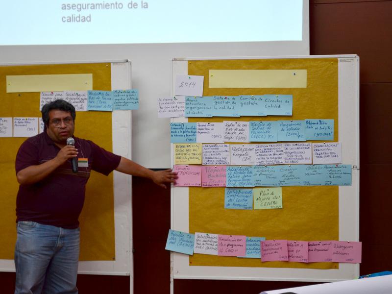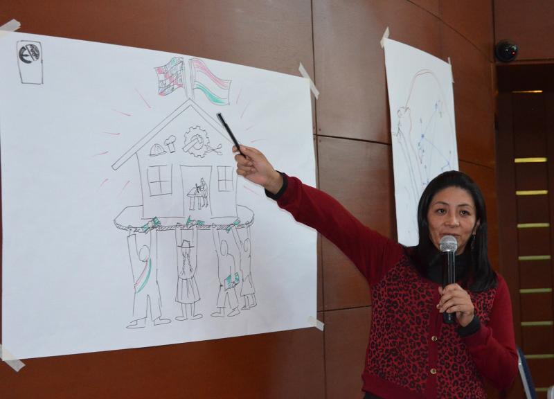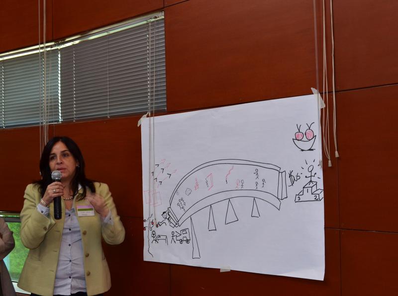 María Elena Cuellar, de la Fundación FAUTAPO, mostró en una gráfica la importancia de una formación técnica con pertinencia social.  El ejercicio permitió reconocer el enfoque de la institución que aporte a la gestión del conocimiento.