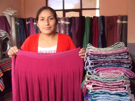 Costura polleras para enviar a distintas ciudades de Bolivia y también a Perú; se trata de Herlinda Romero una joven que se formó en la carrera técnica de confección de polleras en el Centro de Educación Alternativa “C-FIR Vera” (Chuquisaca) y hace poco instaló su propio taller de costura. El ámbito temático de Formación técnica profesional dela Cooperación Suiza en Bolivia, a través de la Fundación FAUTAPO, le brindó algunos recursos para poner su taller y hoy es una emprendedora que cuenta tiene mucho trabajo.