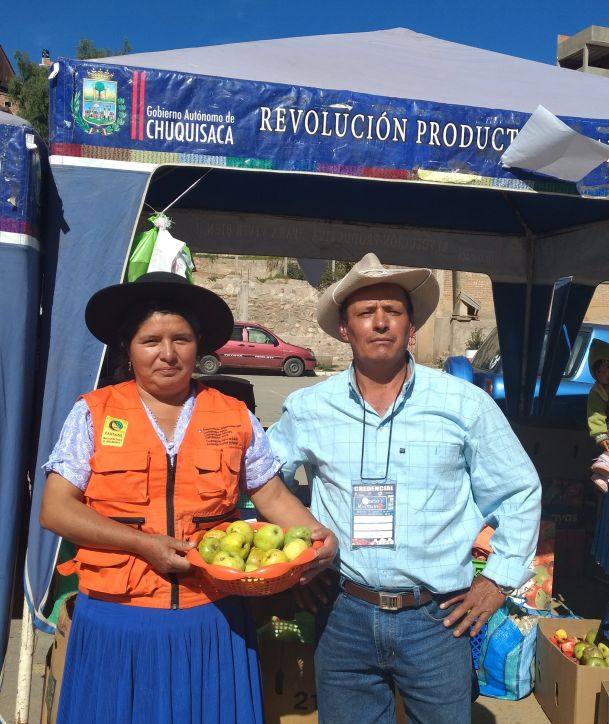 Beatriz Rodas y Wilfredo Rodas, productores de manzana del municipio de Azurduy, fortalecieron sus Unidades Productivas y sus capacidades en el marco del convenio: GAM de Azurduy – DDE de Azurduy y el Proyecto Formación técnica profesional - FAUTAPO