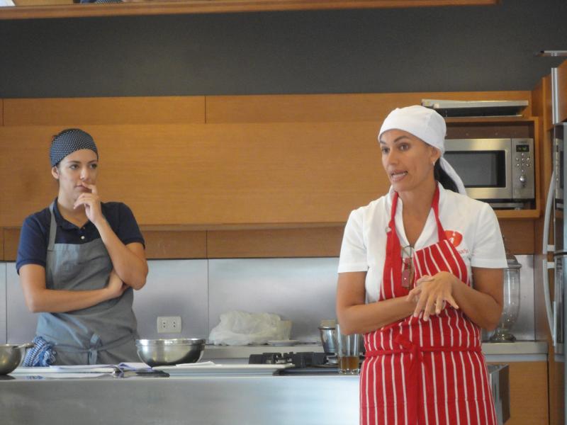 Inés España (Chef Internacional), junto a su ayudante Camila, dirigieron el taller que trató temas importantes como ser la preparación del “Mise en Place” (conjuntos de ocupaciones de realizados, justo antes de la elaboración de un plato o alimento), métodos de cocción, cortes de vegetales y carnes, salsas madres y derivadas, salsas estables e inestables. Postuló que “….antes que nada, primero somos cocineras, es necesario dignificar la profesión, siempre llevar el uniforme limpio y con orgullo”