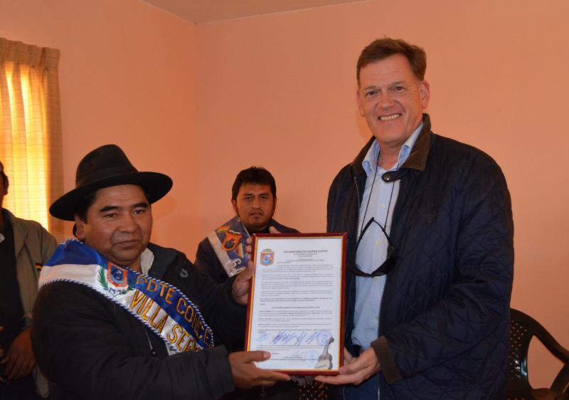 En la visita el Embajador de Suiza en Bolivia, Roger Denzer, fue nombrado huésped ilustre por parte del  Honorable Consejo Municipal de Villa Serrano.  En el reconocimiento se destaca la contribución a la educación técnica y productiva desde la gestión 2010, en el marco de las políticas públicas vigentes.