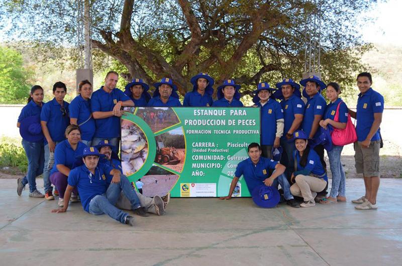 25 participantes, entre comunarios de Guirarapo y alumnos de la carrera de agropecuaria de la Facultad Integral del Chaco, participan del proceso de formación técnica en piscicultura que impulsa la Fundación FAUTAPO y que cuenta con el apoyo del Gobierno Municipal de Camiri y la Cooperación Suiza en Bolivia.