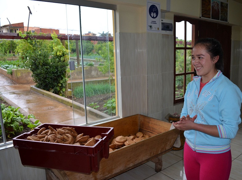 2.- Promover el empoderamiento económico. Los Centros e Institutos de formación técnica generaron espacios para que los(as) estudiantes puedan experimentar y acceder a los mercados locales con productos elaborados en los propios Centros, relacionados a las carreras que se ofertan. También proveen las herramientas que les permiten ser más competitivos e innovadores en los mercados locales. Como resultado, se dinamizó las economías de los Centros y también de los(as) estudiantes emprendedores. Un ejemplo de ello fue el apoyo brindado por el Fondo a estudiantes del Centro Reymundo Espada Solís (Vallegrande - Santa Cruz) donde las participantes de la carrera de panadería pudieron vender sus productos (panes, empanadas y otros) en una tienda comunal y generar un fondo de ahorro para el grupo de emprendedoras quienes egresarán la siguiente gestión, tanto como bachilleres en humanidades como técnicos medios en panadería, a la par de tener un capital ahorrado para ampliar el emprendimiento que ya crearon.