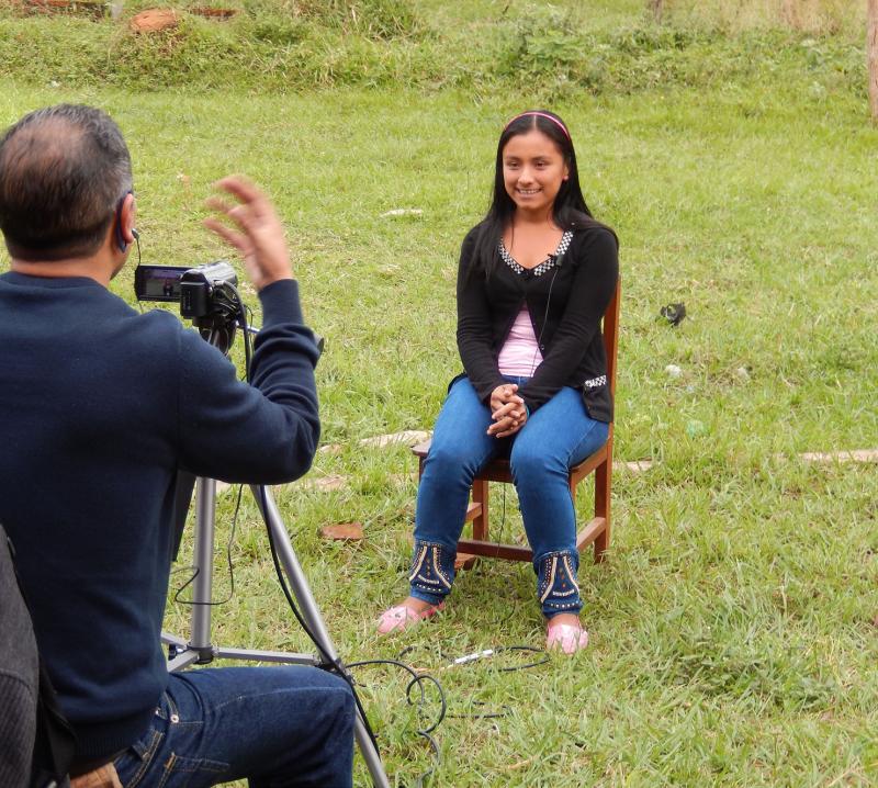 María Anori Guzmán, estudiante de violín del Instituto de Formación Integral Coro y Orquesta de Urubichá, durante una entrevista efectuada para la realización de un vídeo documental del Instituto.