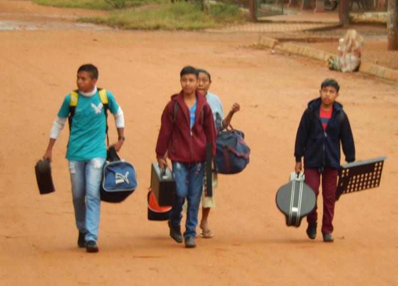 Los músicos de Urubichá rumbo a la ciudad de Santa Cruz...
