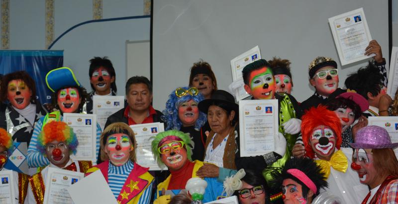 “Si no me muero de un paro cardíaco, me voy a morir de emoción”, dice Víctor Hugo Díaz, más conocido como el payaso “Locotito” en el mundo el entretenimiento, al recibir su certificado de competencias otorgado por el Ministerio de Educación, a través del Sistema Plurinacional de Certificación de Competencias (SPCC).