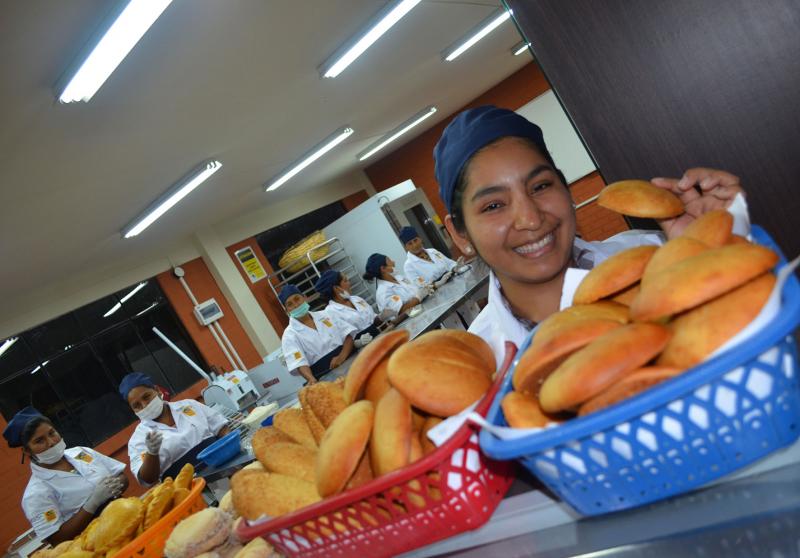 El centro provee a los(as) participantes a la carrera de Panadería y Pastelería las herramientas y condiciones necesarias para que desarrollen las habilidades necesarias en el área. Hornos industriales, batidoras, amasadoras, fermentadoras, herramientas y utensilios que contribuyen a la elaboración de variedad de galletas, tortas, panes, rellenos y decorados que, según las estudiantes les permiten probar y aprender sobre estas delicias.