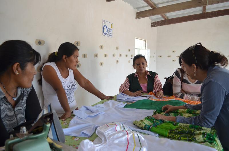 El proyecto incluyó material de arranque: las máquinas de coser, la tela y los implementos básicos, a lo que se agrega la capacitación a una facilitadora quien enseña, con dedicación a las participantes, en cuanto a los cortes, costuras y el diseño de diferentes prendas de vestir.