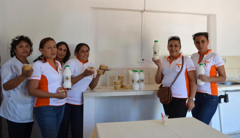 Ellas se organizan semanalmente en grupos para preparar productos como yogurt frutado, yogurt batido, flan, dulce de leche y queso fundido, ofertas que salen al mercado los primeros días de cada semana y en algunas ferias de la zona. “Después de producir no era para nosotras difícil encontrar mercado, todo lo que ofrecíamos salía rápidamente al mercado local”, expresa Geovana Lopez