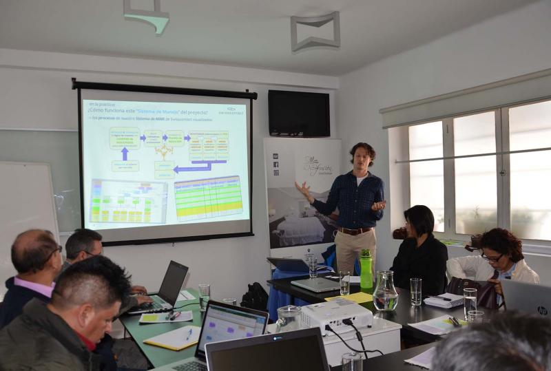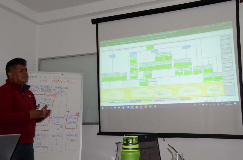 El equipo técnico del consorcio Swisscontact-FAUTAPO tuvo la oportunidad de pasar un taller referente a Monitoreo en el cual se desarrollaron dos importantes temas: Cadenas de Resultados a nivel de Intervenciones y Planes Operativos Anuales. El taller fue brindado por Wiebe Vos, destacado experto en el tema.