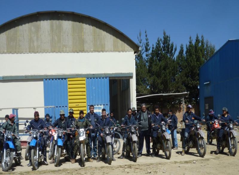 En predios de Fe y Alegría, ubicados en Senkata a más de 37 kilómetros de la ciudad de La Paz y donde también funcionan las oficinas de la departamental, se realizó la semana pasada una interesante práctica de arreglo de motocicletas con estudiantes del Instituto de Aprendizaje Industrial (IAI) de Oruro. 35 estudiantes de último semestre de la carrera de mecánica del instituto, más dos profesores, trabajaron durante dos días, con el objetivo de reacondicionar y dar funcionalidad a 40 motocicletas que se encontraban en los galpones de dicha dependencia. Esta actividad fue supervisada por los profesores y por el Asesor Nacional de Formación para el trabajo, que también es técnico en mecánica automotriz.