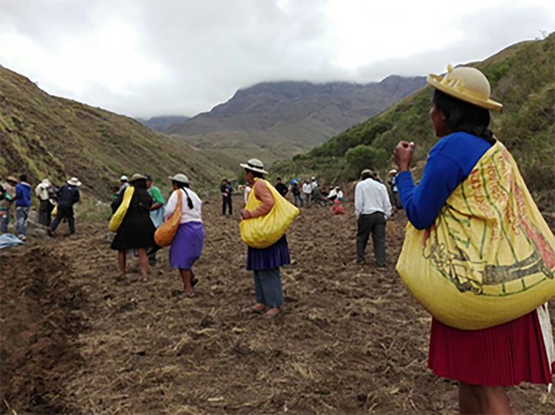 Entonces comenzó la demostración práctica. Con palas, picotas y la yunta los hombres comenzaron a abrir los surcos, líneas perfectamente alineadas donde crecería la papa, se siembra de la vida…