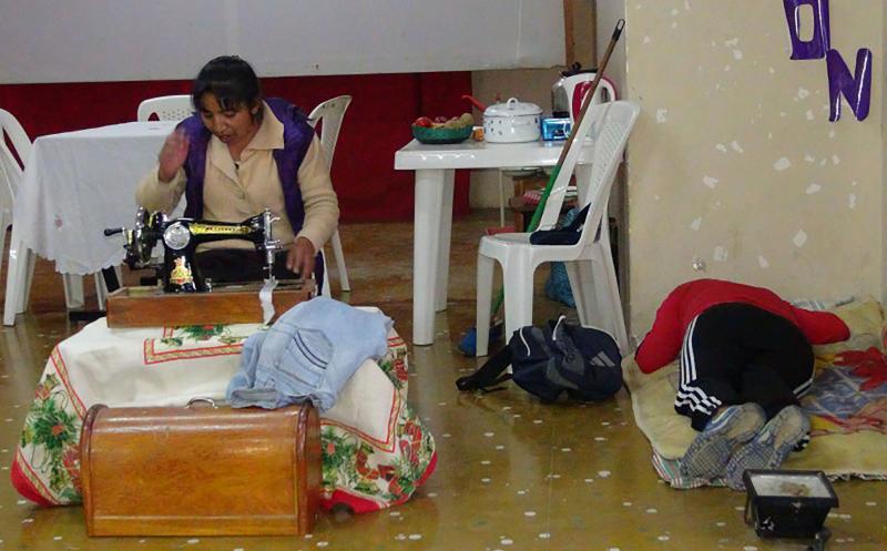 Adela realiza una doble jornada dentro y fuera de la casa, incluso lleva parte del trabajo a la casa. Por su parte, el esposo “Carlos” (Giomar Taboada) no participa en las labores domésticas, descansa y es muy impaciente con los hijos.