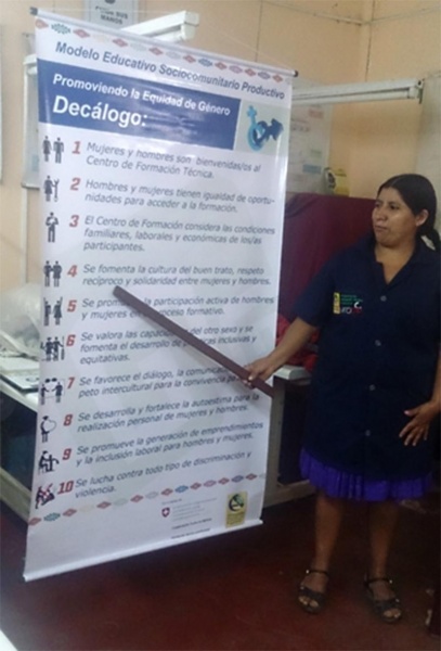 El “Decálogo de Género“ se ha elaborado en consenso con los y las facilitadores(as) de los Centros de formación técnica y se encuentra en cada taller que apoya el proyecto Formación técnica profesional, para promover la equidad de género en el desarrollo del proceso formativo.