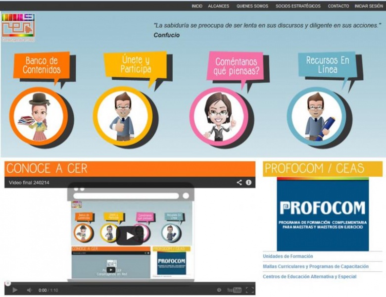 www.cer.edu.bo es el espacio de aprendizaje que actualmente cuenta con más 50 integrantes registrados, pertenecientes a las distintas entidades, los cuales ya hacen uso de las ventajas que ofrece esta plataforma.  ¿Cuáles los servicios que ofrece? Un banco de recursos con más de 80 publicaciones referentes a unidades de aprendizaje, programas de capacitación, mallas curriculares, documentos de apoyo a la sistematización de experiencias correspondientes al Programa de Formación Continua (PROFOCOM) que pueden ser descargadas inmediatamente.  A la par, el o la docente también puede encontrar experiencias compartidas de todo el país.