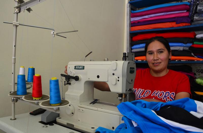Eufronia Tacuara Llanos es propietaria de Yarita Sport, un local comercial ubicado en Aiquile (Departamento de Cochabamba), un espacio dedicado a la confección de ropa deportiva y un nuevo emprendimiento producto de la formación técnica profesional que le brindó el Centro de Educación Alternativa Obispado de Aiquile.
