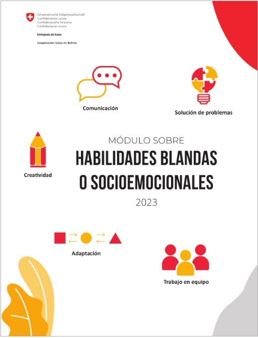 El consorcio Swisscontact - FAUTAPO, en el marco del fortalecimiento de capacidades de docentes pone a disposición el Módulo de Habilidades Socioemocionales orientado a conocer, analizar e interpretar los contenidos mínimos para desarrollar las competencias blandas o habilidades socioemocionales en un entorno de formación técnica y en el mundo del trabajo. El Módulo considera: i) Autoestima y resiliencia; ii). Comunicación en el entorno laboral; iii). Manejo y resolución de conflictos y, iv) Trabajo en equipo.